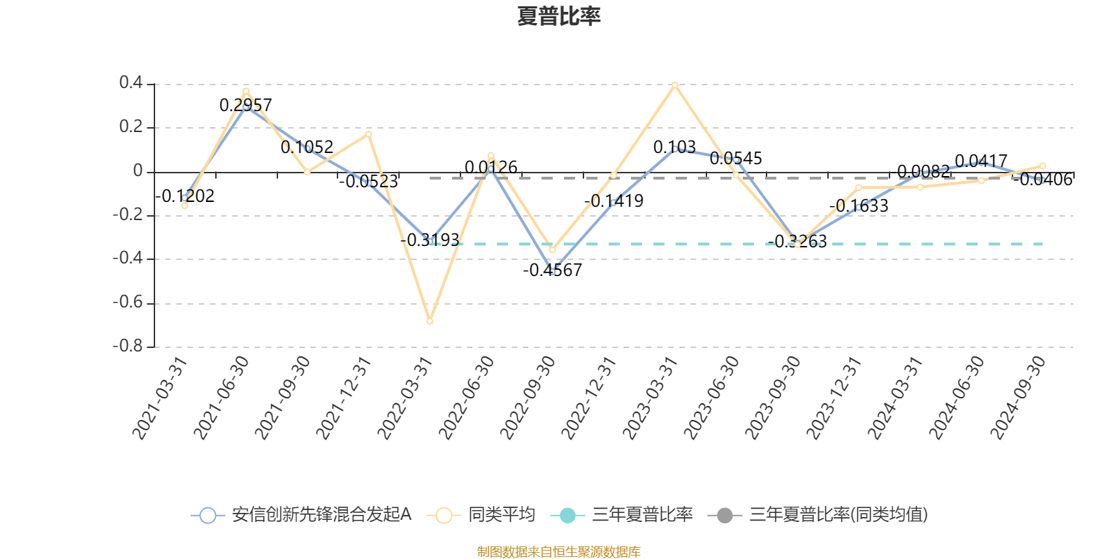 截至9月30日,基金近三年夏普比率为-0.3303,位于同类可比基金116/126。